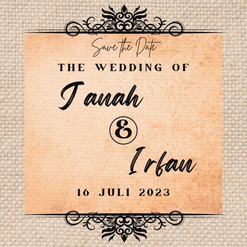 JANAH and IRFAN Assalamu’alaikum wr wb Segala Puji Bagi Allah SWT yang telah menjadikan hambanya hidup berpasang-pasangan. Dengan memohon Ridho, Rahmat, dan Berkah Allah SWT, kami bermaksud untuk mengundang Saudara/i dalam acara pernikahan yang kami selenggarakan. Days Hours Minutes Seconds Dan di antara tanda-tanda kekuasaan-Nya ialah Dia menciptakan untukmu pasangan-pasangan dari jenismu sendiri, supaya kamu […]