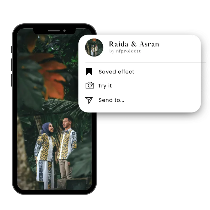 Bantu kami mengabadikan momen-momen bahagia di acara pernikahan kami dengan Instagram Filter di Stories, Save Filter yang telah kami sediakan dan Jangan Lupa Tag ya ❤